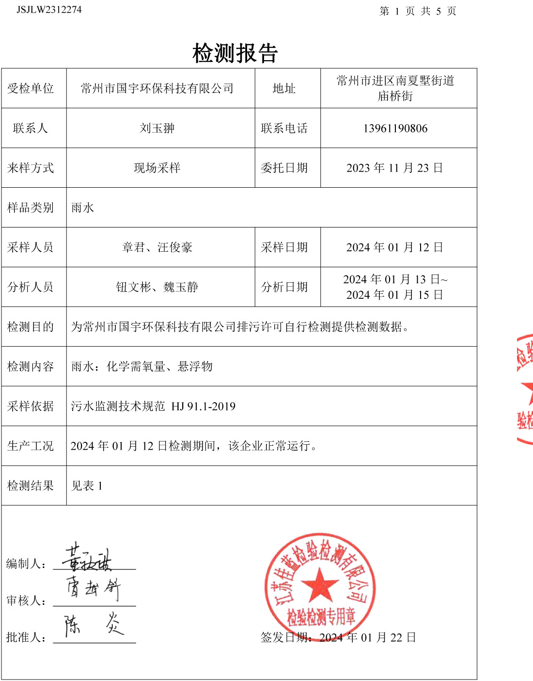 廢水檢測(cè)報(bào)告