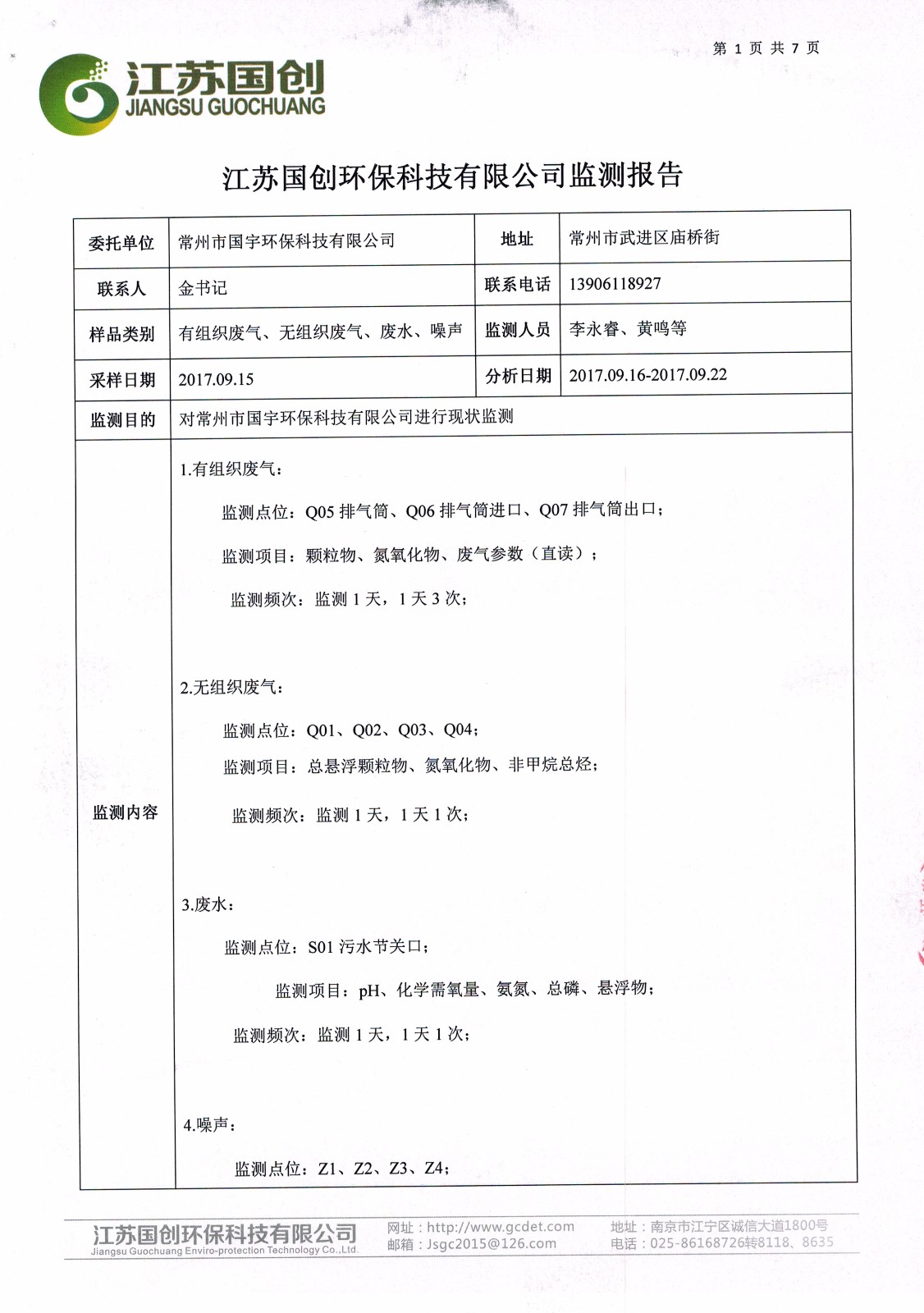 國宇環(huán)保--國創(chuàng)氣、聲等2017年下半年監(jiān)測網(wǎng)上公示